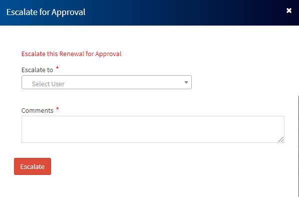 To approve the renewal request, Navigate to the policy page and use the Renewal button. The screen below will be opened.