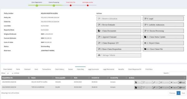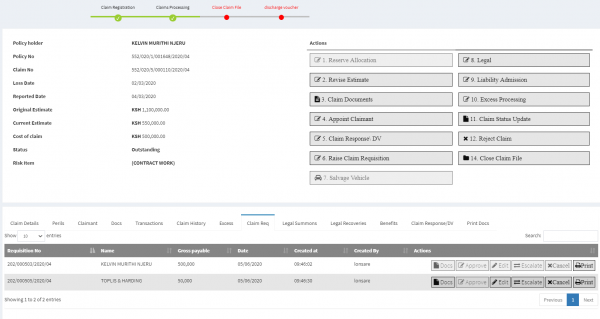 AIMS has access control to various functions and modules of the system, for instance, users working in Claims Department will only be able to see and perform functions that relate to their Department while those in Reinsurance will only have menu options related to the Reinsurance. Further to user access, user processing limits can also be set per product and appropriate escalations will be enabled during processing.