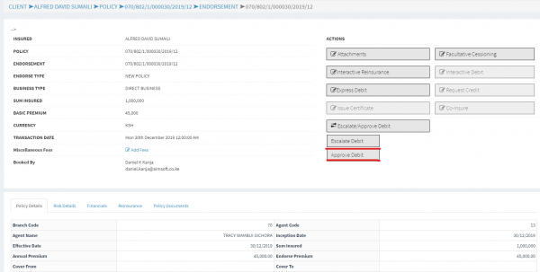 - The Decline button prevents debiting and the endorsement can be re-escalated after updating.