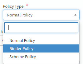 • On the New Policy screen, select Binder/Scheme Policy type