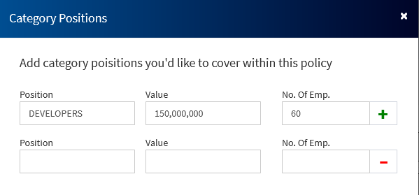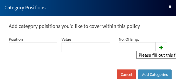 • If you've selected the Basis of Cover from above as Category/Positions follow the steps below.