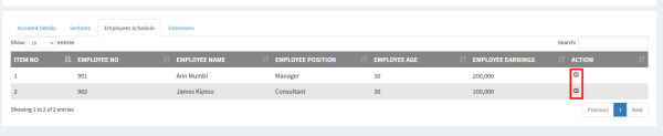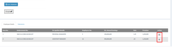 i) To remove or edit employee detail click on the highlighted icons from image above