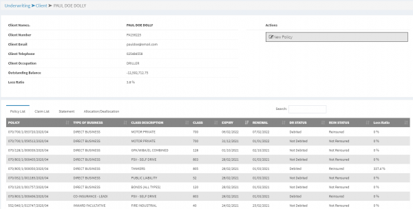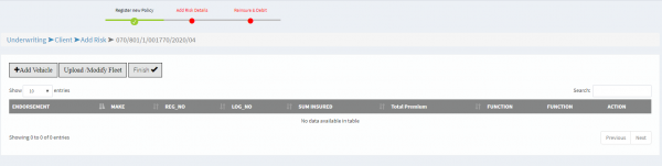 • Express reinsurance is a feature that allows a user to do reinsurance on multiple vehicles that are within the company retention, on the click of a button. This comes in handy for clients with hundreds of vehicles in their fleet in which the total sum insured goes beyond the company’s retention.
