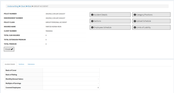 i) Once all classes have been captured, click the Finish button to proceed and debit the policy.