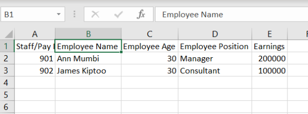 f) Open the template and feed the data as illustrated below