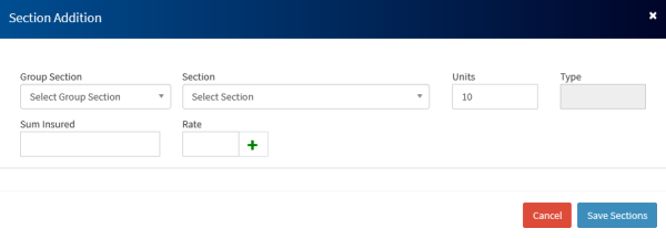 e) Next add sections to the policy to capture the premiums and sum insured.