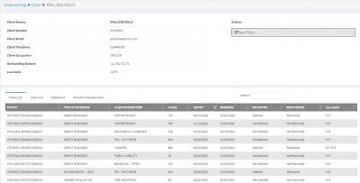 - b. Click on the +Add Client button and create the client if it is a new client. If the client exists, search and click on the client record or +Policies button to access the client details screen.