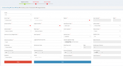 - Fill in the required motor details where fields marked with red asterisk * are mandatory.