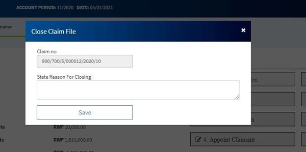 • c) Click on the New Claim button to open Claim registration screen. The screen below is opened