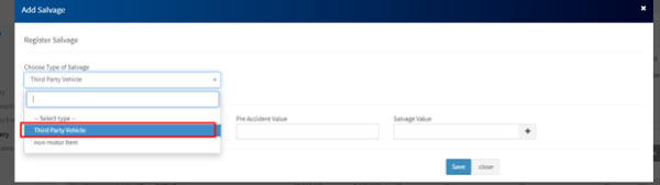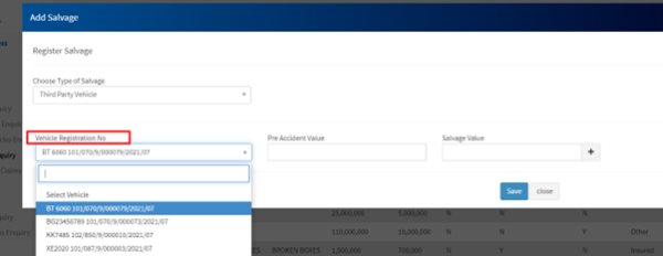 • Upon saving navigate to the salvage enquiry menu to view the salvage vehicle